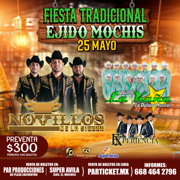 Descripción:¡VEN Y CELEBRA LAS FIESTAS TRADICIONALES DEL EJIDO CON NOVILLOS DE LA SIERRA, LA KAÑA Y LA EXPERIENCIA!